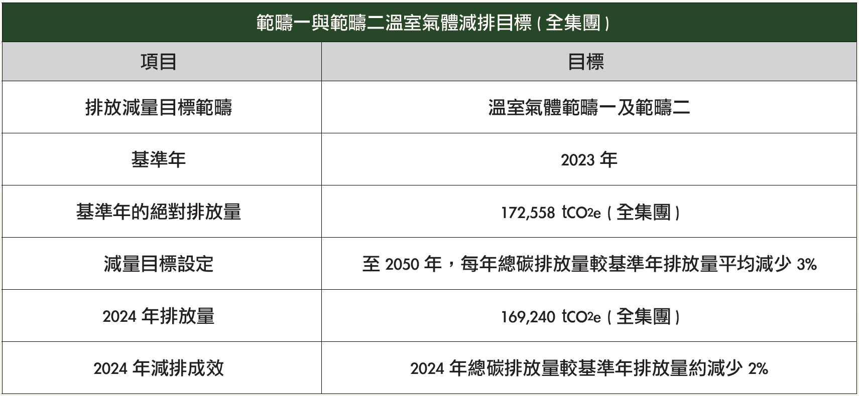 註2:本報告書之基準年訂為2023年,揭露範疇涵蓋全集團,係於2023年始完成全集團溫室氣體盤查範疇一與範疇二之資料彙整;