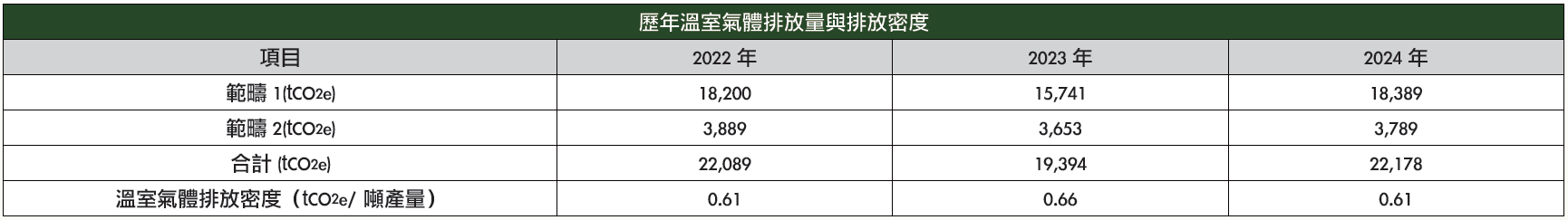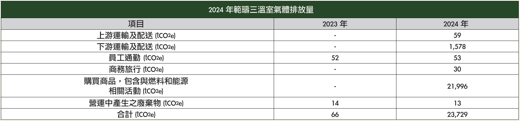 註4:本表2024年度溫室氣體排放係數係參考行政院環境部公告之《溫室氣體排放係數管理表6.0.4版》為計算依循。