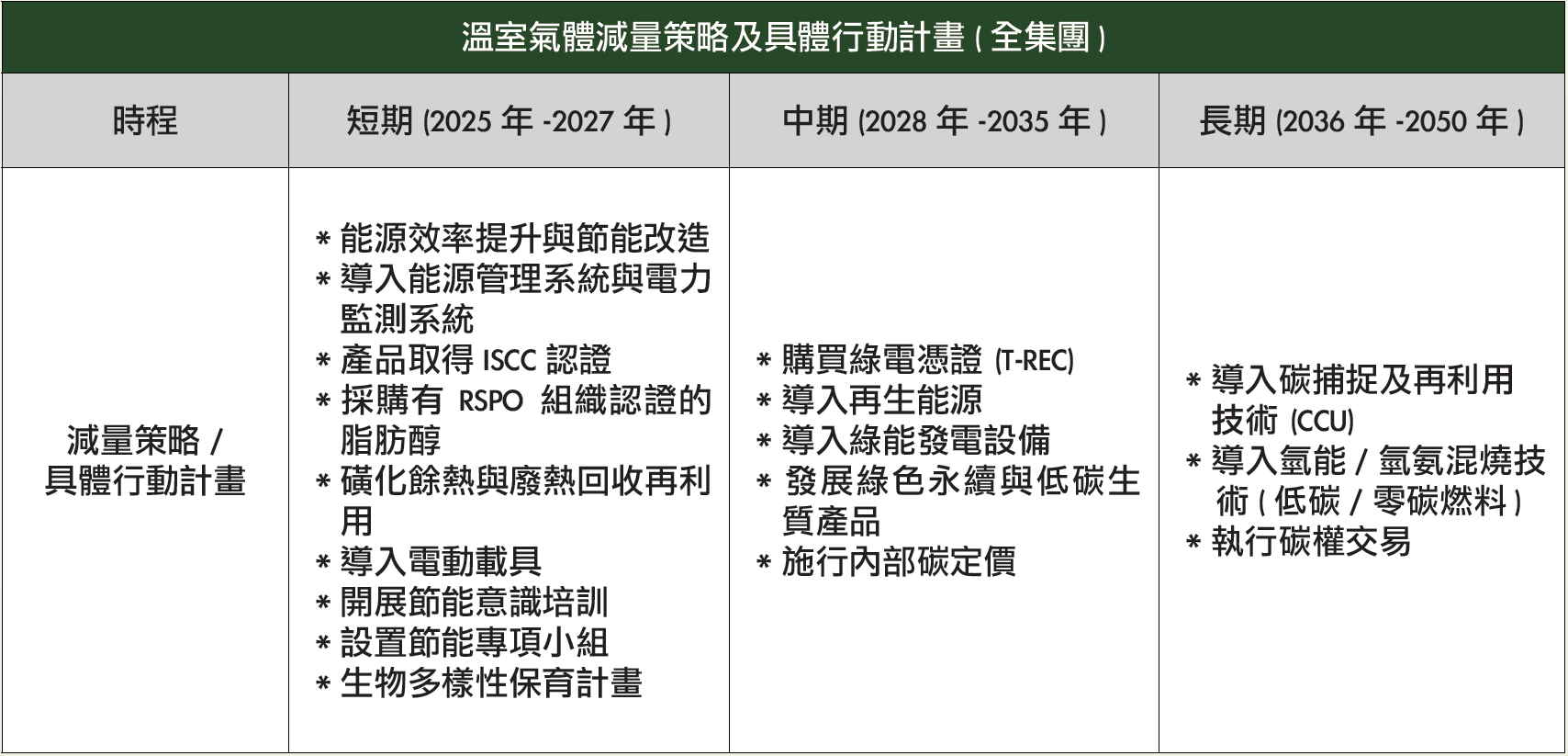 為強化集團氣候行動管理,和桐化學企劃室主導設定溫室氣體減排目標,並擬定系統化減量策略與具體行動計畫。透過跨部門協作,全面推動低碳營運,穩健邁向淨零目標: