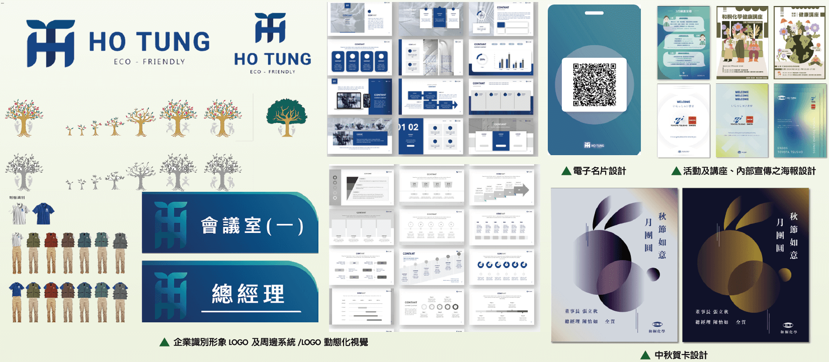 實習生參與公司基礎會議及設計規劃,獨立作業公司logo 設計,以及常態性名片、簡報公版製作、平面海報宣導及規章,並參與公司網站更新對外社群及招募網站及人資基礎行政作業,並於實習最後階段進行實習成果的總結和報告。